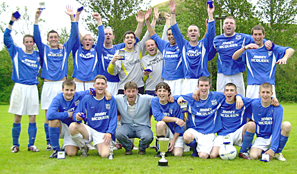 The Dunoon squad celebrate winning the Argyll and Bute Cup for the first time