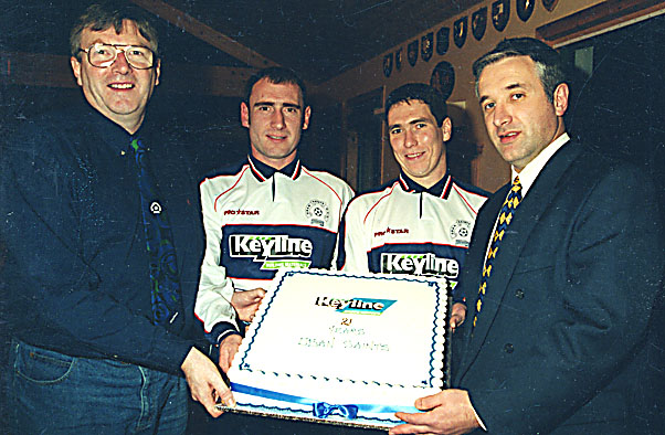 Oban Saints won the Atlantis Leisure 'Team of the Year' Award in 1998-99. Goalkeeper David Dunlop (right) is pictured with Roger Parry, who handed over the award