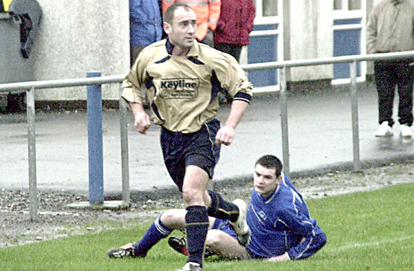 Saints striker Darin Bryars in action against Weir Recreation in the West of Scotland Cup, 2005