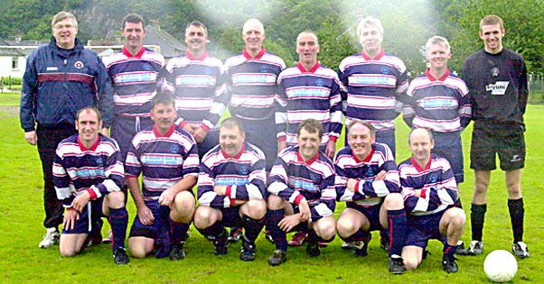 Oban Saints Veterans entertained a team of Scottish All Stars at Glencruitten on Saturday 19th June, 2004. The game ended in a 3-3 draw with Darin Bryars, Neil MacIntyre and Iain Jackson scoring for Saints with Stephen Downie, Russell Middlemass and Sandy Buchan netting for the All Stars. The Saints line-up (L to R) David Buchanan, Allan MacPhail, Hamish Mathieson, Peter MacCallum, Neil MacIntyre, Eric Smith, Steve Murphy, Daniel Cassells. Front Row (L to R) Darin Bryars, Roddy McCuish, Duncan MacKinnon, Frank Beaton, Dougie Campbell and Marek Madej.