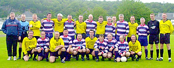 Oban Saints Veterans and the Scottish All Stars face the camera before the 3-3 draw on Saturday 19th June, 2004