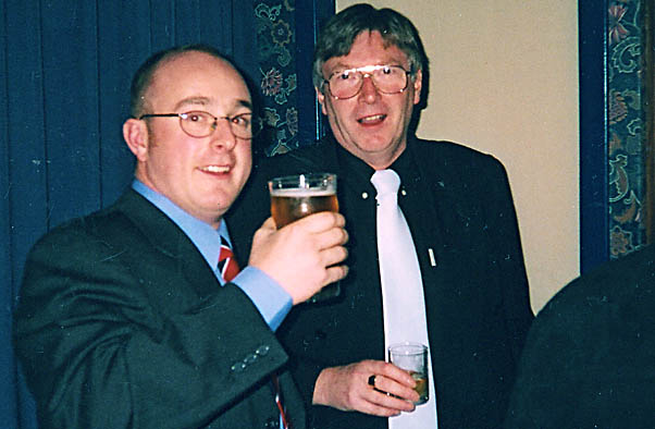 Saints Under 19 manager David Mitchell and secretary David Buchanan enjoy a drink before the Atlantis Leisure Sports Awards Dinner in 2002.