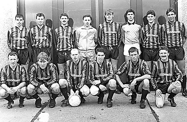 Saints won the Mansell Memorial Trophy in 1989 defeating Kinlochleven United 5-1. Back Row (L to R) Stewart Duncan, Jim Small, Colin Welsh, Neil Allan, Finlay O'Rourke, David Dunlop, Iain Alexander, Eric Smith. Front Row (L to R) Tommy Shields, Alan MacDougall, Donald MacLennan, Keith MacCallum, David MacLeod and Mark Welsh.