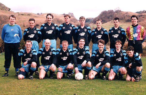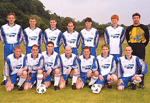 Saints pictured with their new away kit for 1998 supplied by sponsors Keyline Building Merchants: Back Row (L to R): David Buchanan (secretary), Colin Campbell, Iain Jackson (player/manager), Finlay ORourke, Scott Jones, David MacLeod, Stewart Duncan, David Dunlop. Front Row (L to R): Darin Bryars, Donald MacLennan, Scott McCamley, Keith MacCallum (captain), Frank Beaton, Graeme Niven and Shuggie Campbell