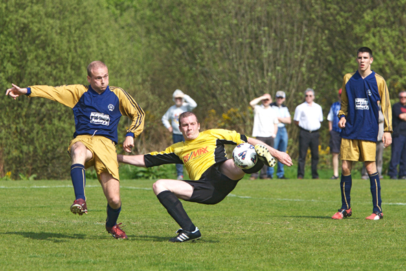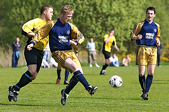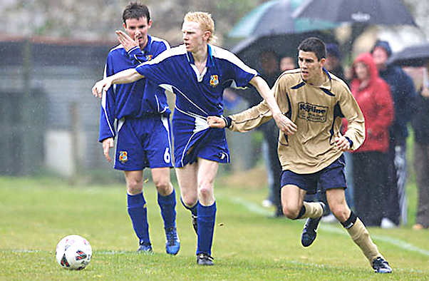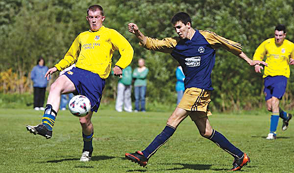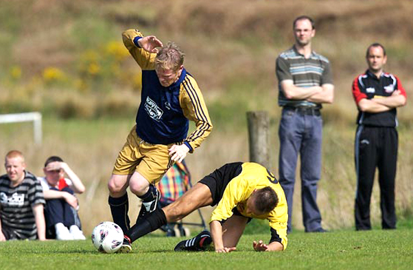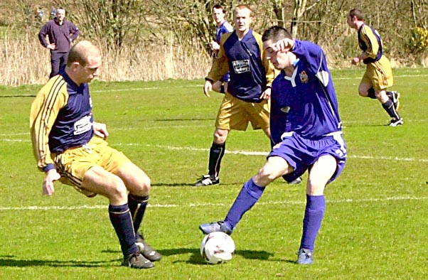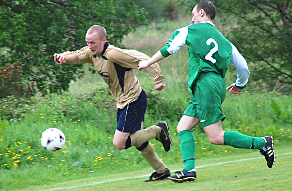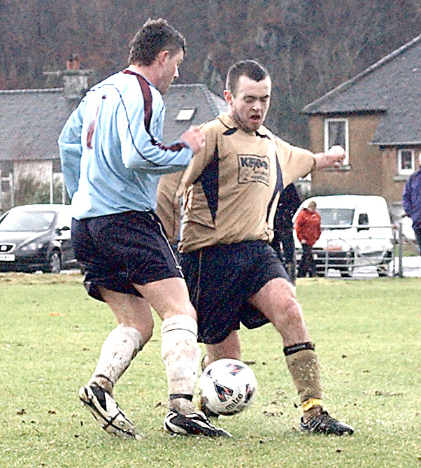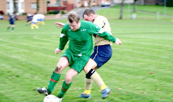 Donald Campbell tries an unorthodox method of stopping Gartcosh defender Joe Bunch.