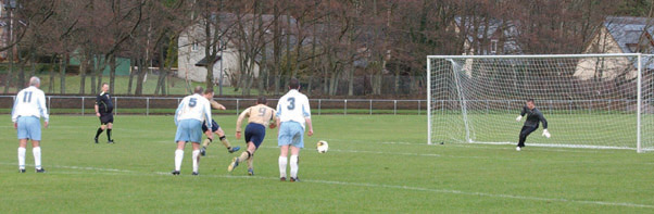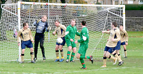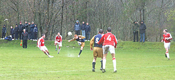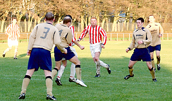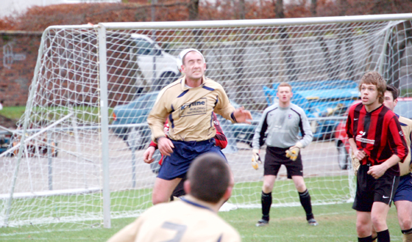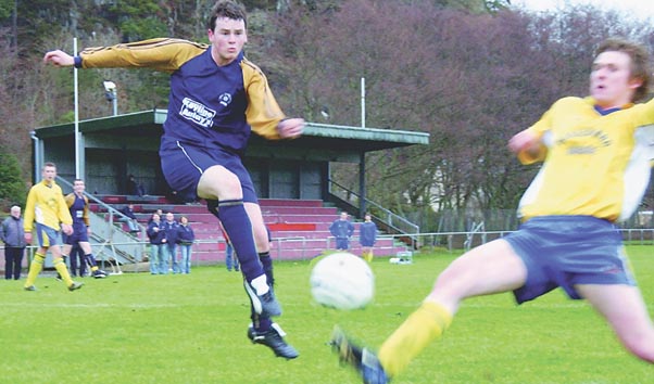 Dean Walker netted four of the nine goals Saints scored against Gilston Park in the 4th round of the Soccer World Scottish Amateur Cup at Mossfield Stadium on Saturday 14th January, 2006. Photo: Hugh Ross, The Oban Times