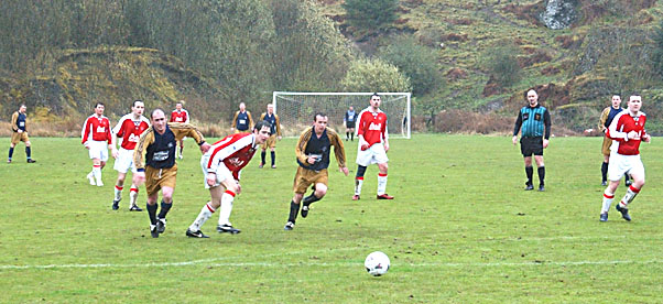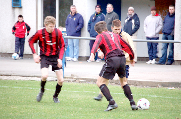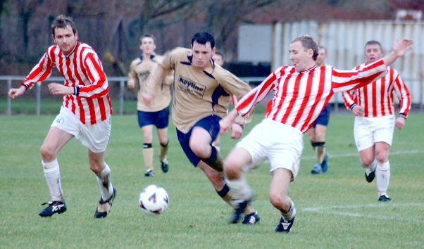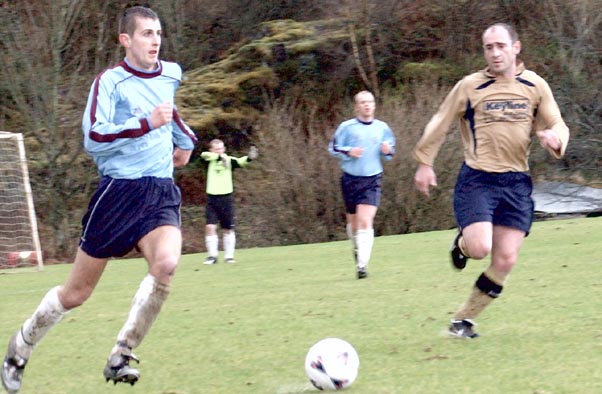 Allan MacKay bursts through the Newmilns defence during their Scottish Amateur Cup third round tie at Mossfield Stadium, Oban on Saturday 23rd December, 2007. Saints defeated the Ayrshire Premier League team 2-1. Photographs: Stewart MacKenzie, The Oban Times