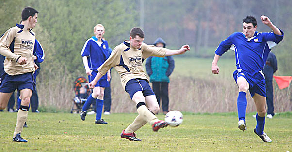 Kings Park Rangers goalscorer John Mathieson gets a shot on target, but this effort was blocked by Alex Craik.