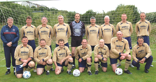 The Oban Saints Veterans team who defeated Giffnock North Old Crocks 5-2 at Glencruitten on Saturday 7th July, 2007. Saints goal scorers were Roddie McCuish (3), Eric Smith and Thomas Sharp. Back Row (L to R) David Buchanan, Stephen Jamieson, Dougie Campbell, Eric Smith, Colin Mackenzie, Iain Alexander, Norman Carmichael, Scott Buchanan, Allan MacLellan. Front Row: (L to R) Roddie McCuish, Duncan MacKinnon, Frank Beaton, Darin Bryars, Matthew MacMaster, Thomas Sharp and David Livingstone. Photos: Jackie Grant, The Oban Times
