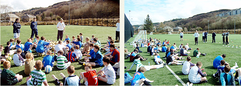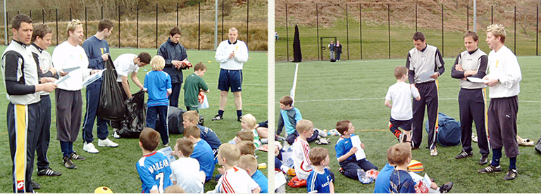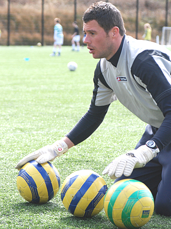 Alan Combe puts the young goalkeeper's through their paces. Scott Buchanan points the children in the right direction