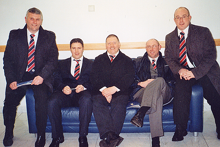 Iain Alexander, Peter MacMillan, Duncan MacKinnon, Thomas Sharp and David Mitchell relax before the game