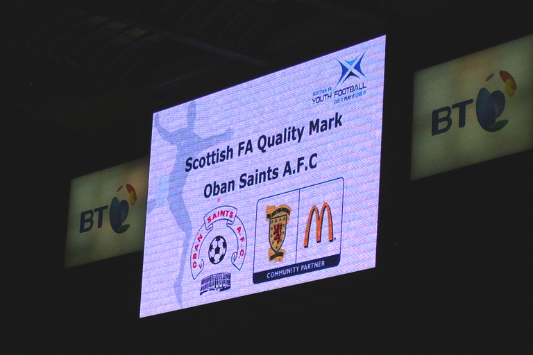 The Oban Saints club badge was displayed on the big screen at Hampden during the match.