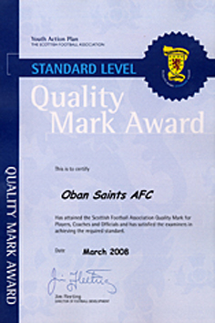 | OBAN SAINTS PRESENTED WITH THE SCOTTISH FA COMMUNITY CLUB QUALITY MARK AWARD |