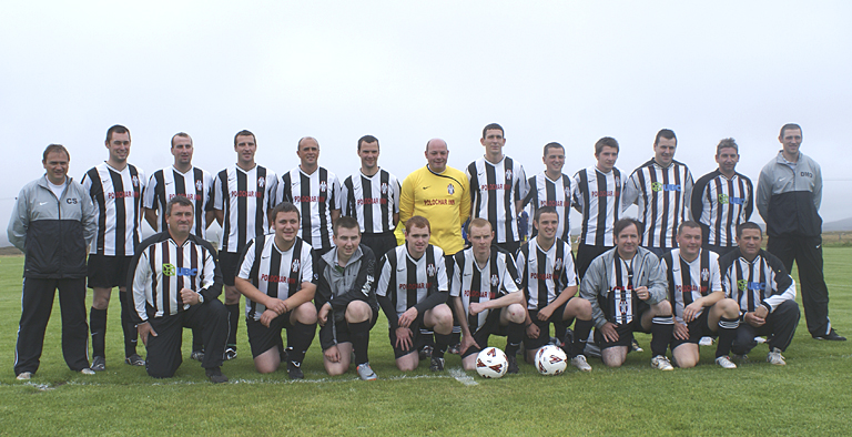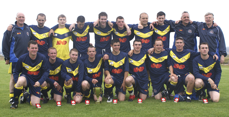 The Oban Saints squad pictured after winning the Friendship Cup on their weekend tour to Uist on Saturday 24th and Sunday 25th July, 2010.