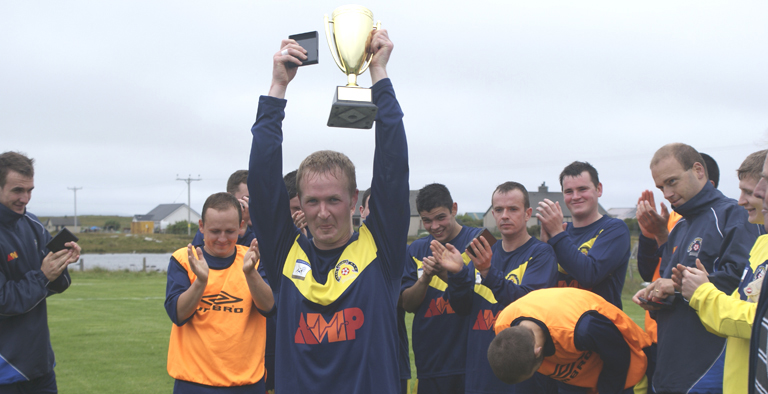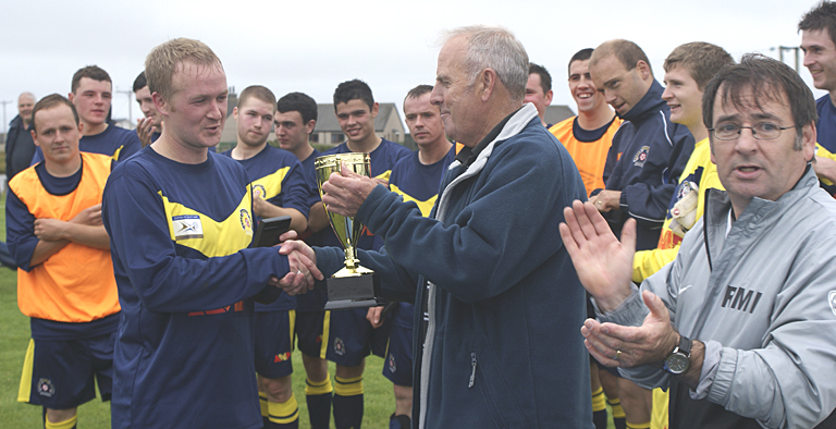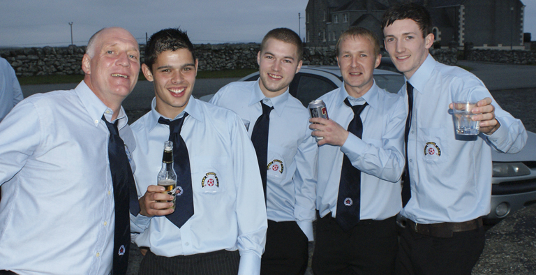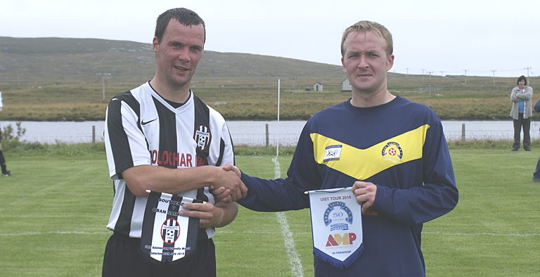 | Saints enjoy pre-season tour to the Isle of Uist | A PARTY of players, coaches and committee members from Oban Saints travelled to Uist on Saturday 24th July to take part in Southend Football Club's 50th anniversary celebrations. The Oban side played two games over the weekend: On Saturday they played Southend for the Friendship Cup and on Sunday they played against a Uist Select. The first game against Southend was played at Daliburgh and although it took Saints a while to get going they turned in a superb performance beating the local side 12-0 thanks to goals from Allan MacKay (3), Donald Campbell (2), Innes Paterson (2), Sean Ford, Chris Graham, Ross Maitland and probably the best goal of the game netted by former skipper Pele MacCallum who came on as a late substitute. Pele only kicked the ball once, but it ended up in the back of the net, what more can you ask. The Friendship Cup was handed over to Keith Millar at the end of the game by former Southend skipper and manager Ronnie MacKinnon. On the Saturday night both teams and supporters retired to St Peter's Hall where a meal, ceilidh and dance were held. On the Sunday it was a very tired and emotional Saints outfit that left the Uist Bunkhouse to make the half hour trip to Liniclate Sports Centre to take on a Uist Select. Credit to the players who actually managed to play (and not be sick on the touchline) as they fought back from 2-0 down to earn a hard-fought 2-2 draw. Netting for Saints were Donald Campbell and Keith Millar. The Oban club would like to thank sponsor Angus MacPhee of AMP Electrical Services for organising the trip and to everybody on Uist for their superb hospitality.